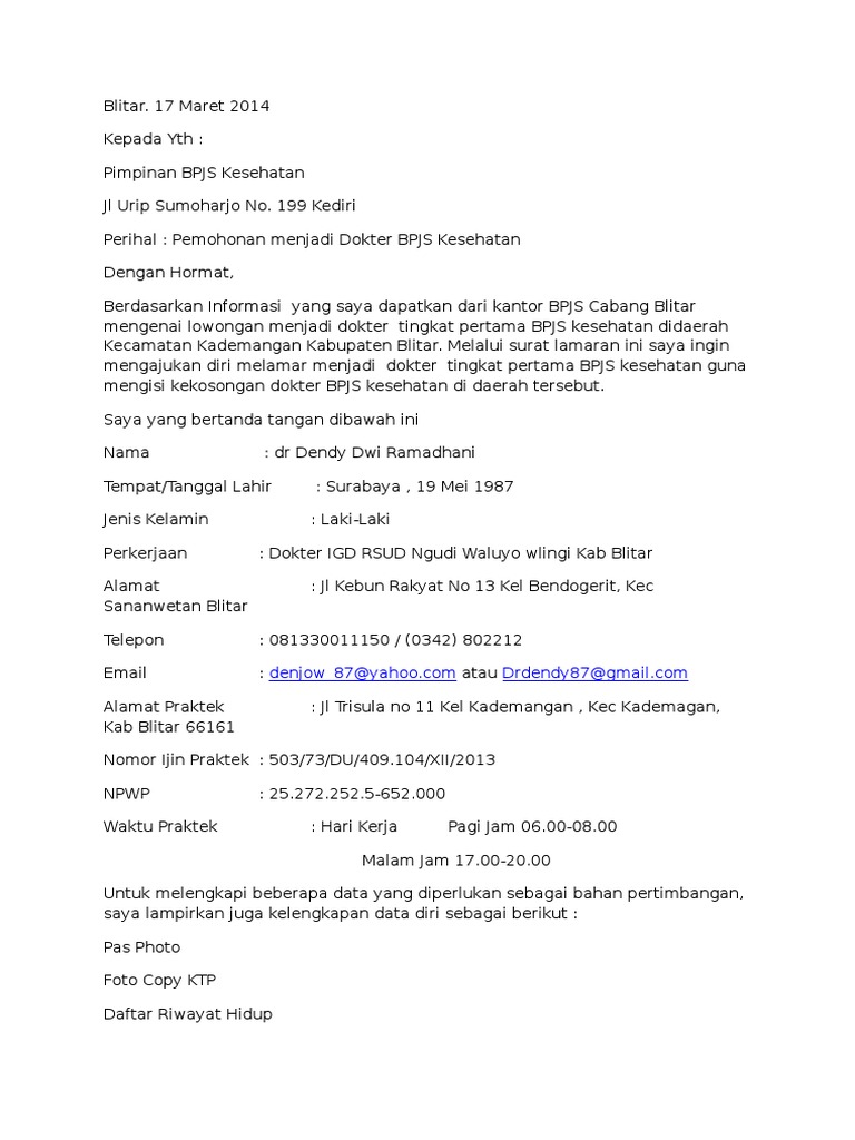 Doc Contoh Lamaran Pekerjaan Bpjs Wiyan Sri Yunarti Academia Edu